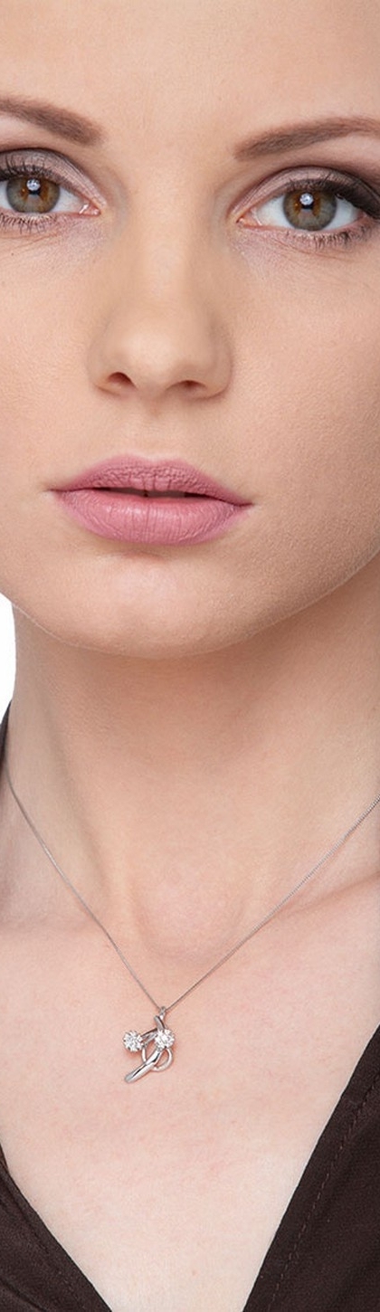 Collana con ciondolo a fiori in oro bianco 18k, con incastonati diamanti taglio brillante, colore G, purezza Vs.