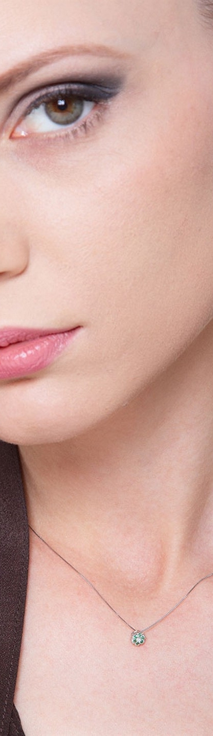 Collana in oro bianco 18k con fiorellino in smeraldi e diamante.