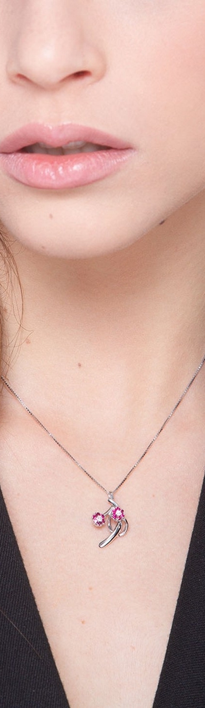 Collana in oro bianco 18k con fiori in rubini e diamanti