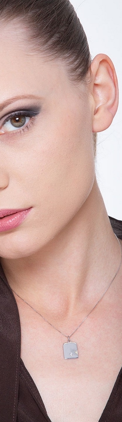 Collana in oro bianco 18k con medaglietta e diamante