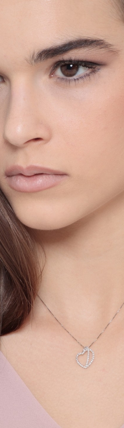 Collana in oro bianco 18k con pendente a cuore in diamanti, ct. 0,28