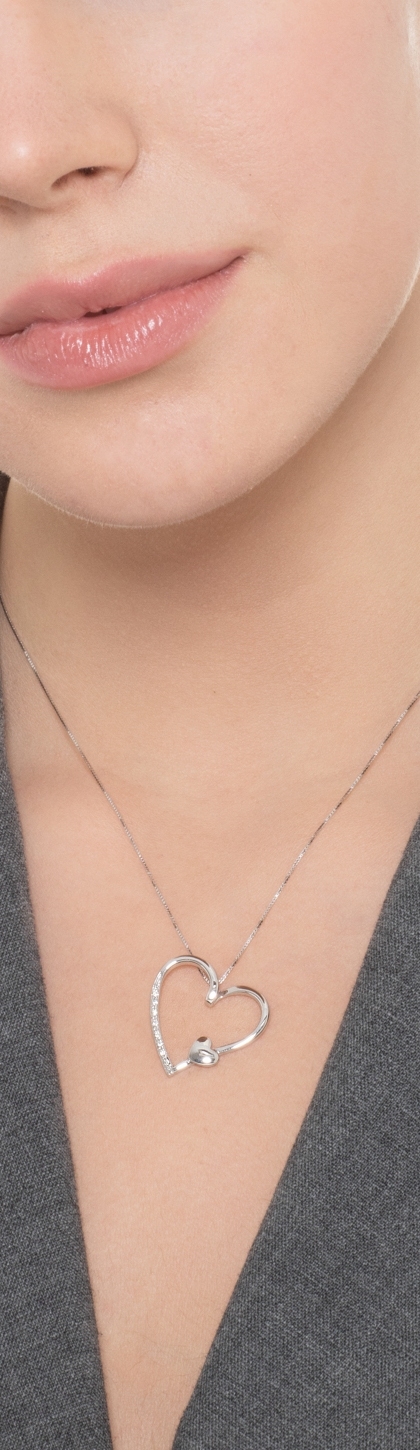 Collana in oro bianco 18k con pendente a cuore in diamanti