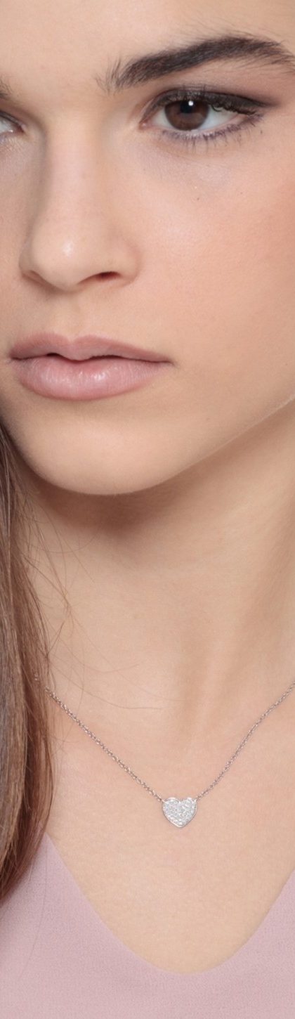 Collana in oro bianco 18k con pendente a cuore in pavè di diamanti