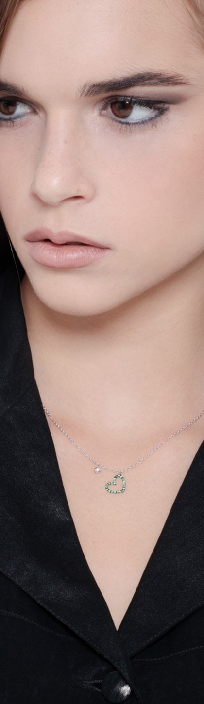 Collana in oro bianco 18k con pendente a cuore in smeraldi e diamante