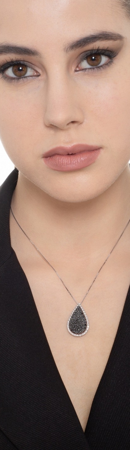 Collana in oro Bianco 18k con pendente a goccia in diamanti e diamanti neri