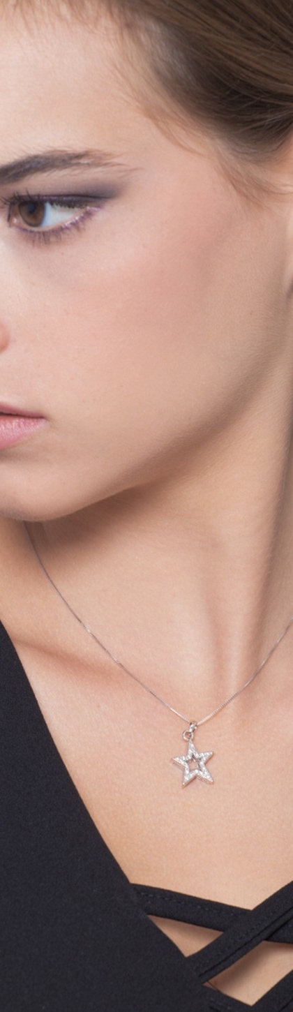 Collana in oro bianco 18k con pendente a stella aperta e diamanti