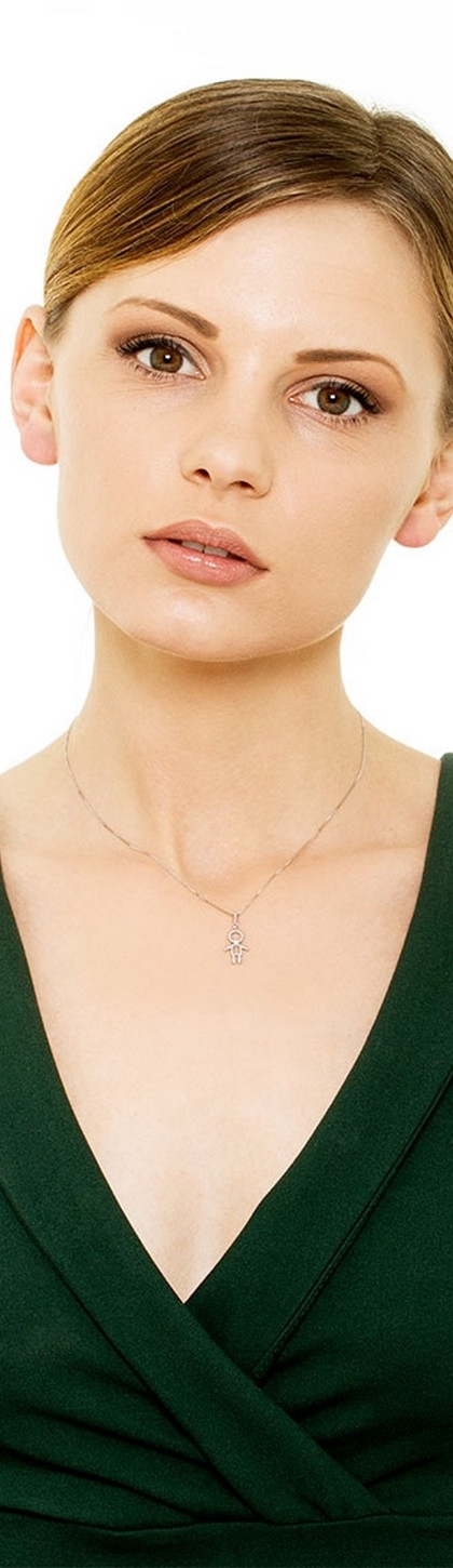 Collana in oro bianco 18k con pendente bimbo e diamante, ct. 0,04.