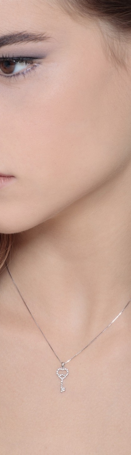 Collana in oro bianco 18k con pendente chiave in diamanti.