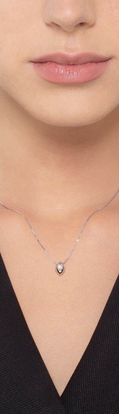 Collana in oro bianco 18k con pendente chicco di riso e diamante