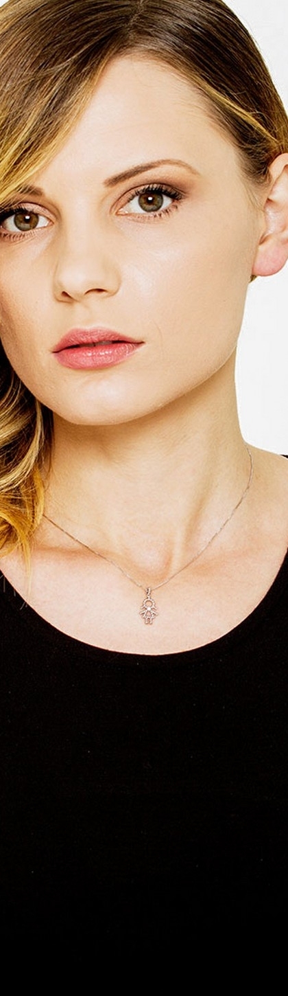 Collana in oro bianco 18k con pendente di bimba e diamante.