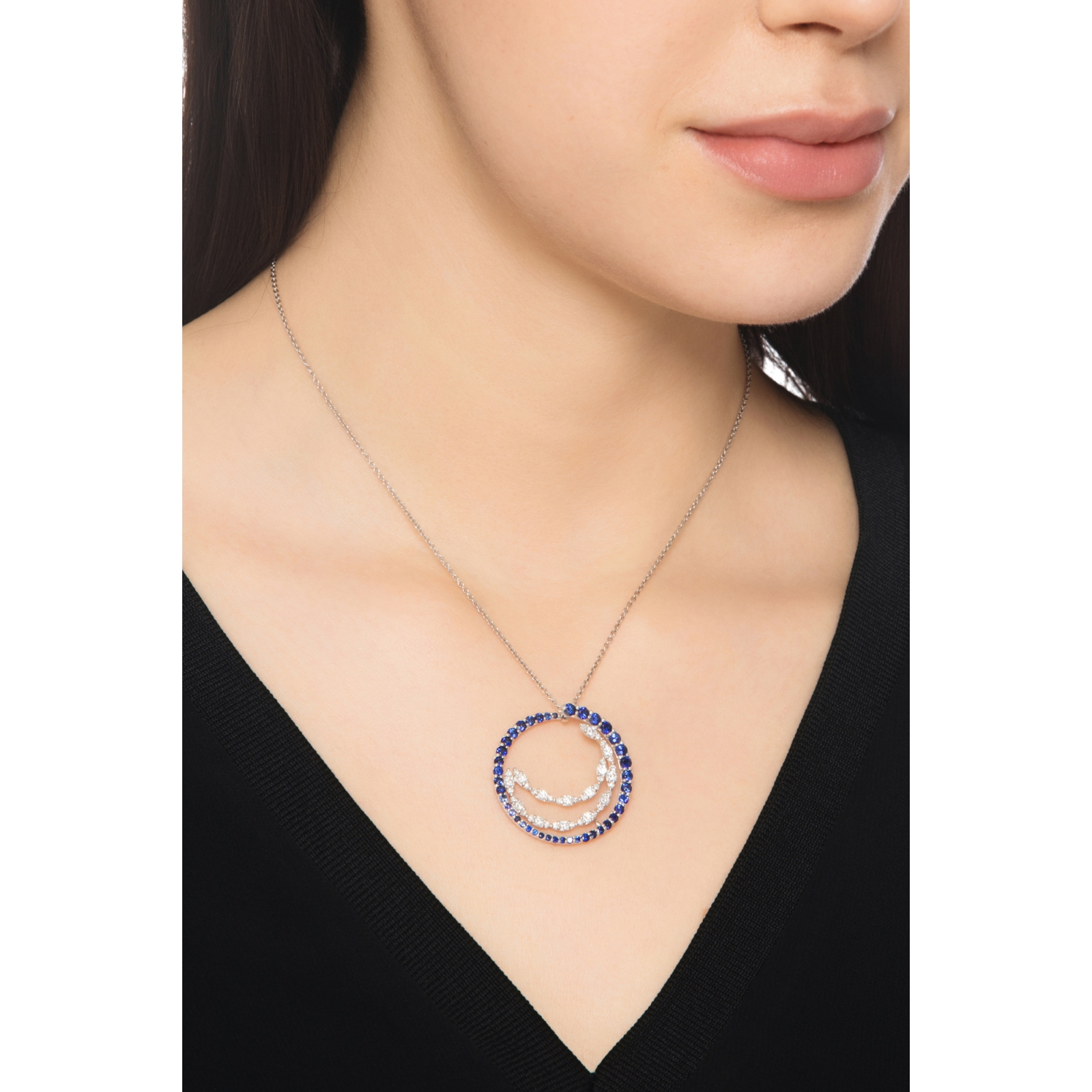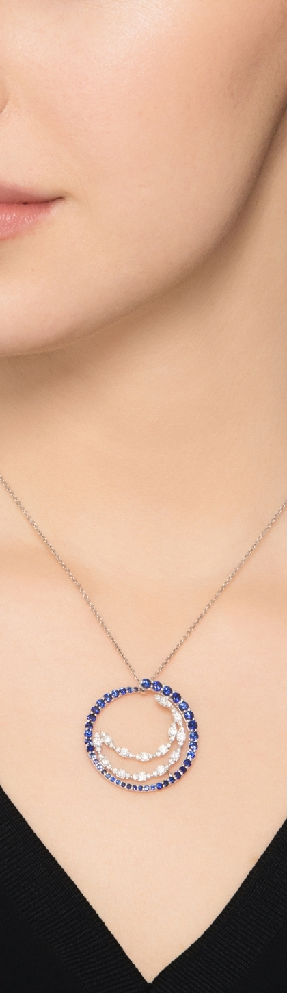 Collana in oro bianco 18k con pendente in zaffiri blu e diamanti