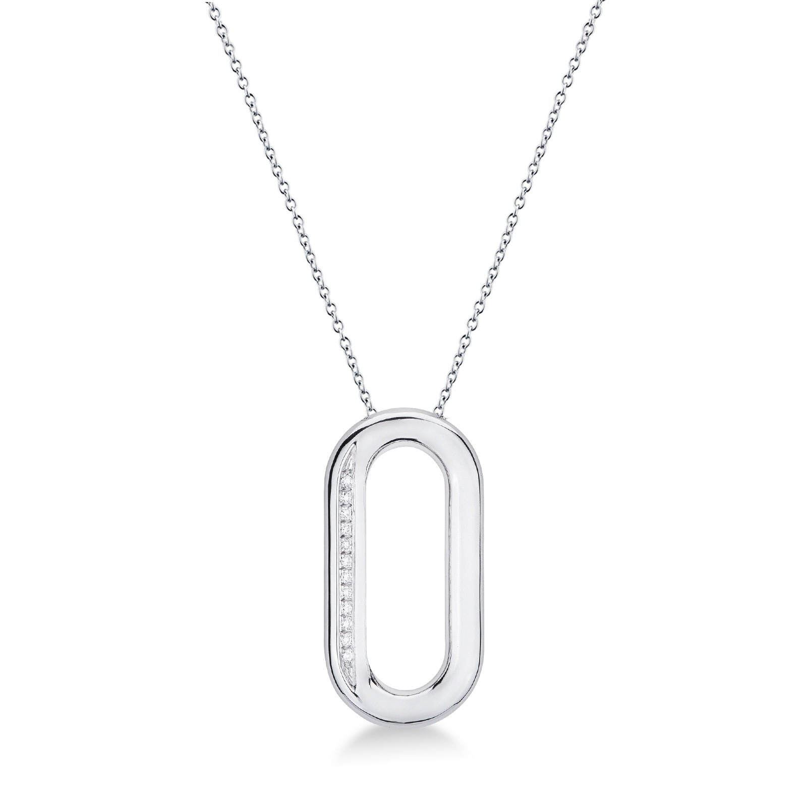 Collana in oro bianco 18k con pendente ovale ornato da una fila di diamanti