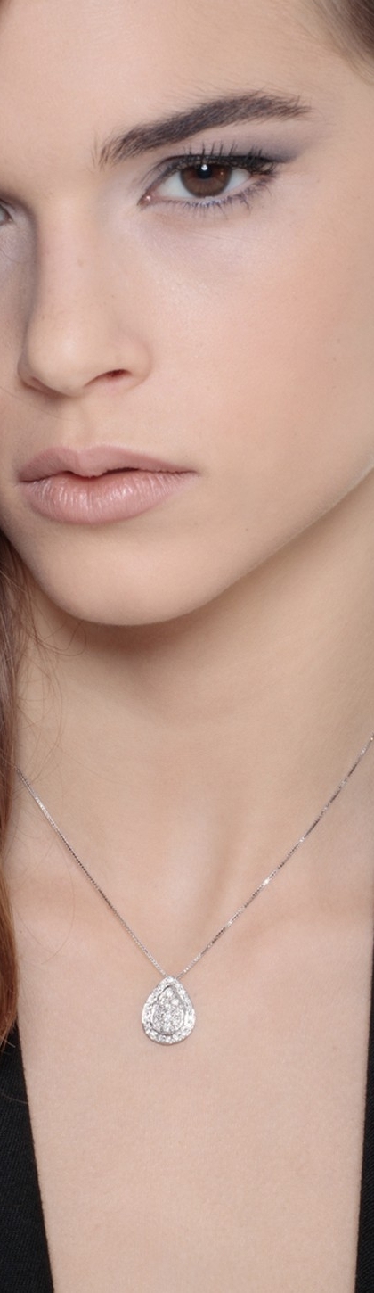 Collana in oro bianco 18k con pendente passante a goccia in diamanti