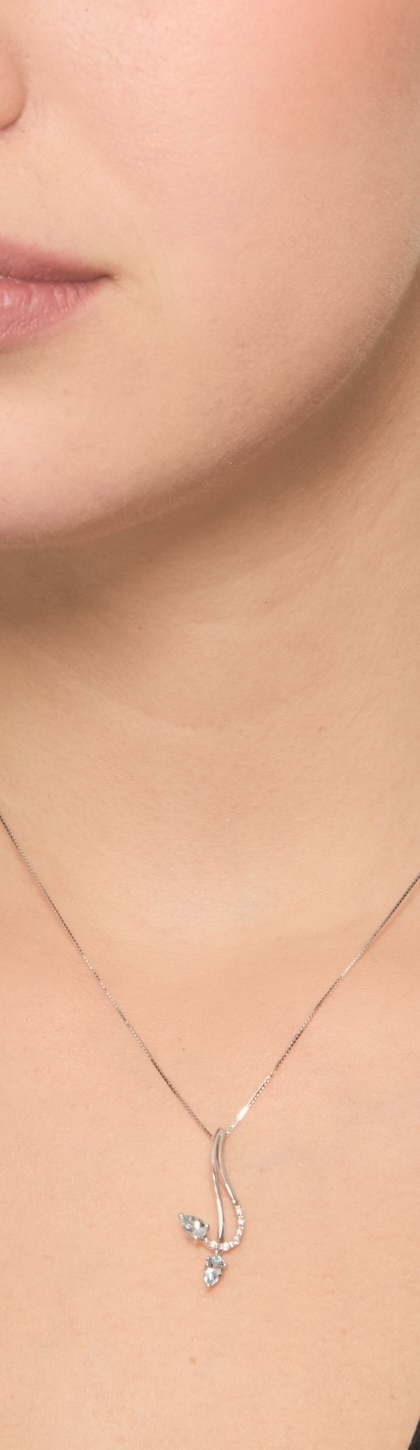 Collana in oro bianco 18k con pendente sinuoso in diamanti e acquamarine