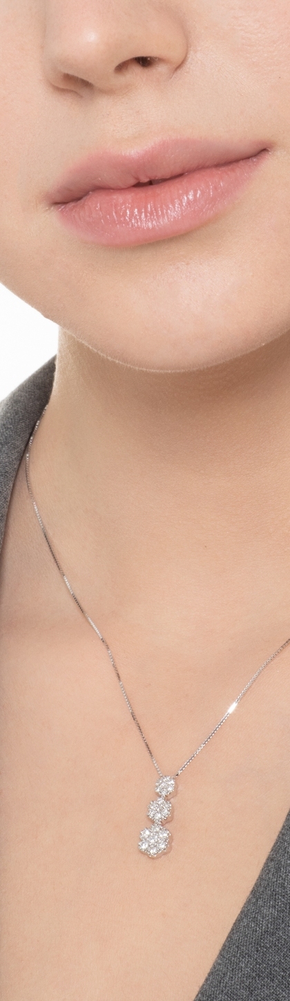 Collana in oro bianco 18k con pendente trilogy a fiore in diamanti