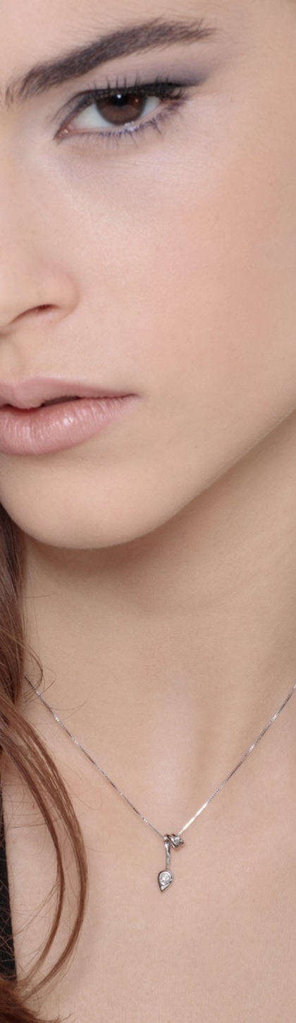 Collana in oro bianco 18k con punto luce a goccia e diamante