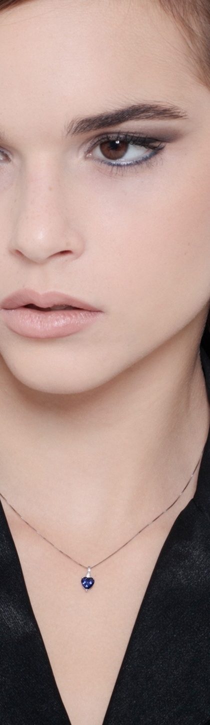 Collana in oro bianco 18k con zaffiro blu a cuore e diamante