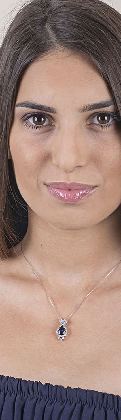 Collana in oro bianco 18k con zaffiro blu a goccia e diamanti