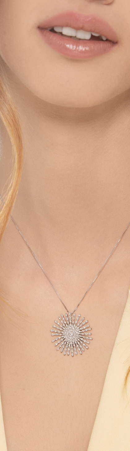 Collana in oro bianco 18k e ciondolo a 28 raggi con diamanti