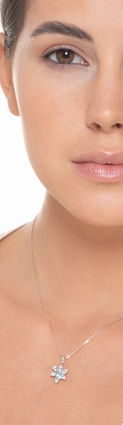 Collana in oro bianco 18k e ciondolo a 6 petali con acquamarina a cuore e diamanti