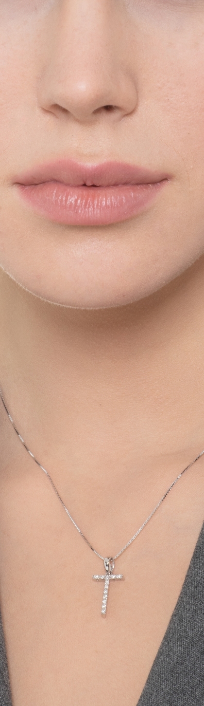 Collana in oro bianco 18k ciondolo con lettera T sgriffata con incastonati diamanti taglio brillante colore G e purezza Vs.
