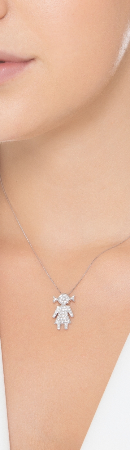 Collana in oro bianco 750 con ciondolo bambina in diamanti