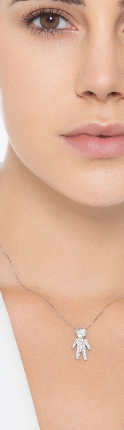 Collana in oro bianco 750 con ciondolo bimbo in diamanti