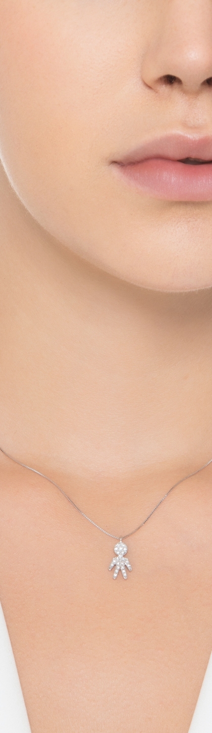 Collana in oro bianco 750 con ciondolo bimbo piccolo in diamanti