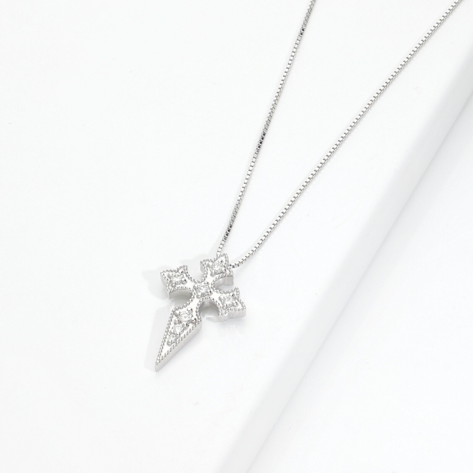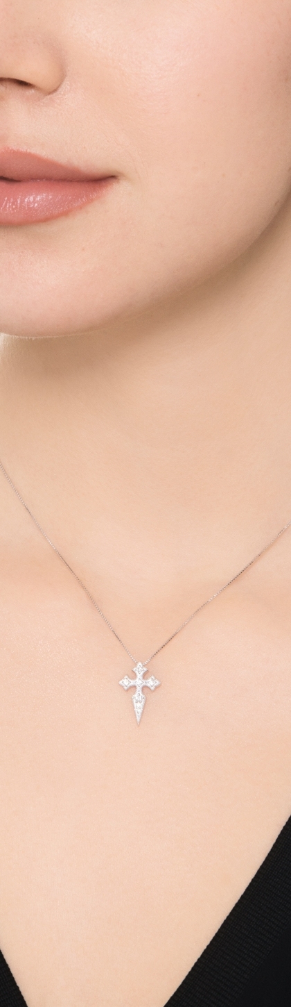 Collana in oro bianco 750 con ciondolo croce in diamanti