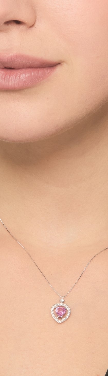 Collana in oro bianco 750 con ciondolo cuore zaffiro rosa e diamanti