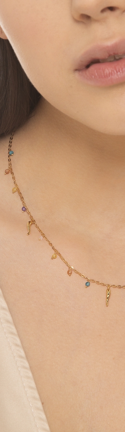 Collana in oro giallo 18k con charms e perline colorate, 42 cm