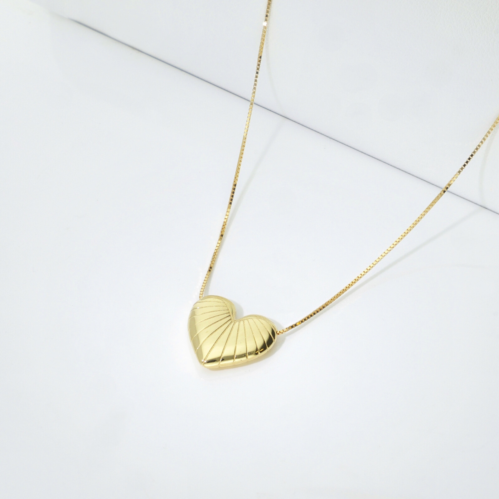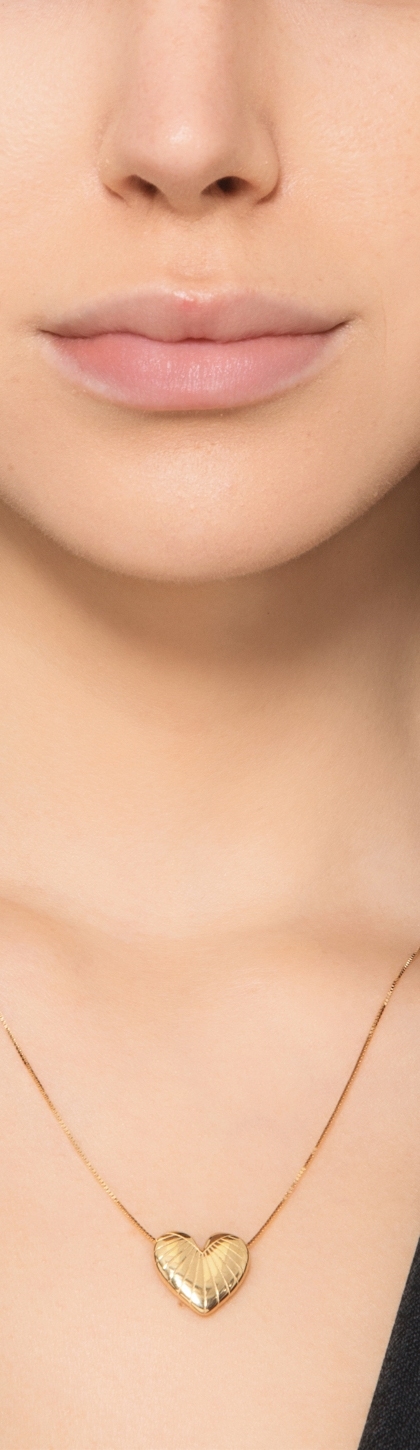 Collana in oro giallo 18k con ciondolo cuore zigrinato