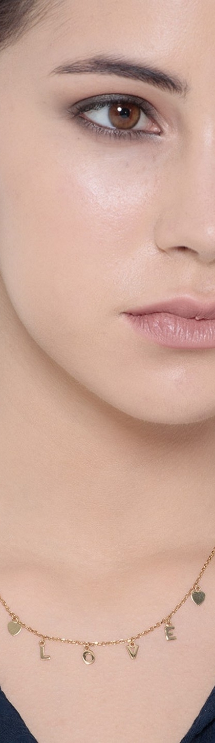 Collana in oro giallo 18k con due piccoli cuori e scritta LOVE.