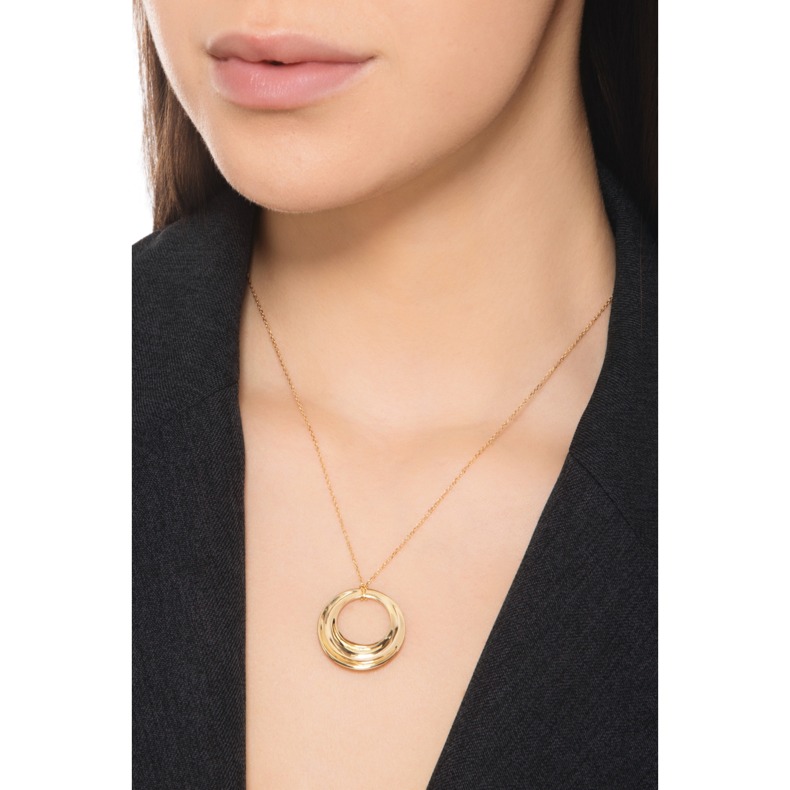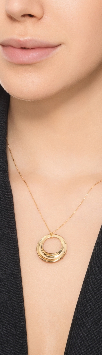 Collana in oro giallo 750 con ciondolo a cerchio traforato