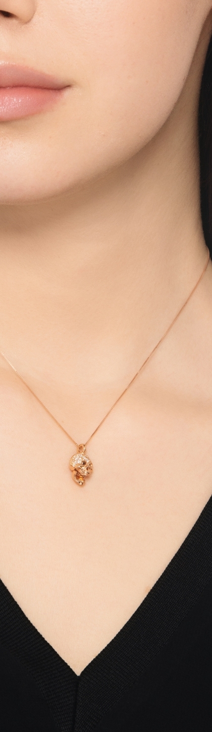 Collana in oro rosa 18k con ciondolo a teschio in diamanti neri e bianchi