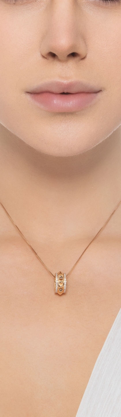 Collana in oro rosa 18k con ciondolo borchie e diamanti