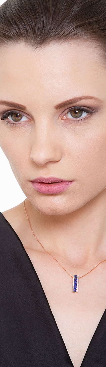 Collana in oro rosa 18k con ciondolo in zaffiri blu e diamanti