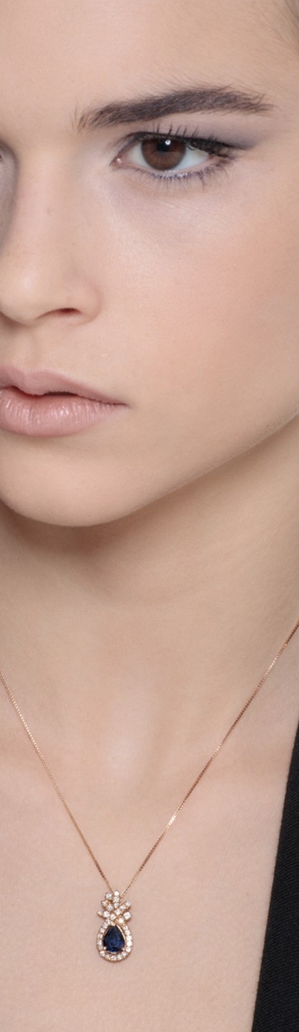 Collana in oro Rosa 18k con diamanti e zaffiro blu a goccia