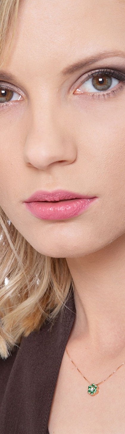 Collana in oro rosa 18k con fiore in smeraldi e diamante