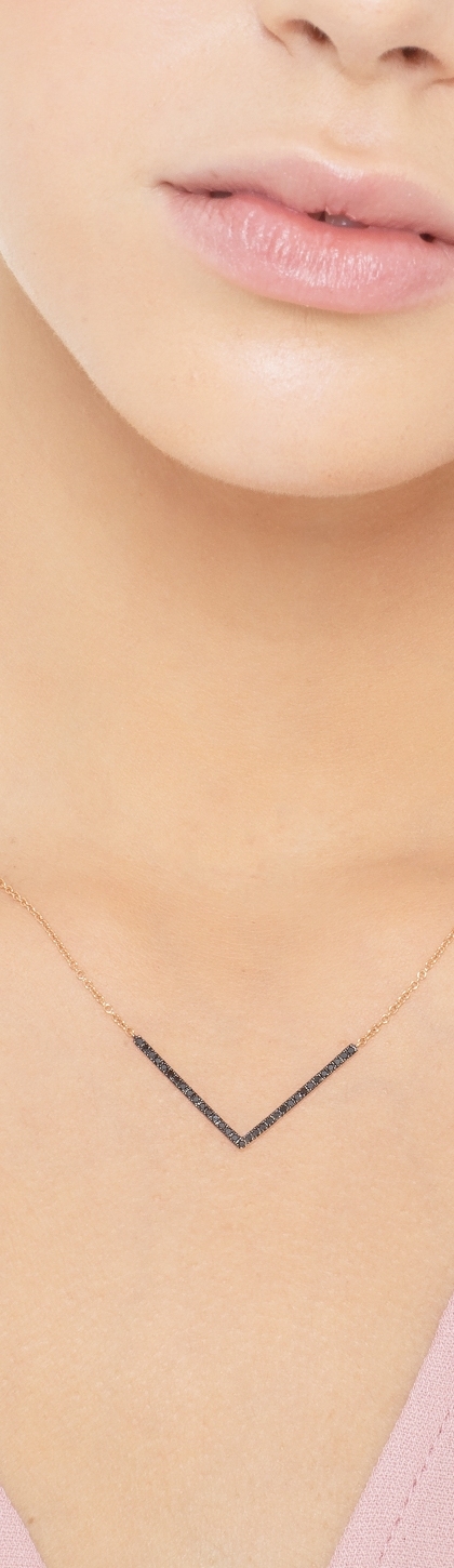 Collana in oro rosa 18k con pendente a grossa V in diamanti neri