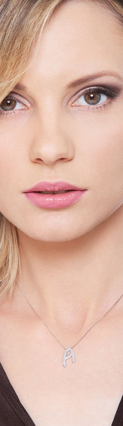 Collana lettera A in oro bianco 18k con diamante