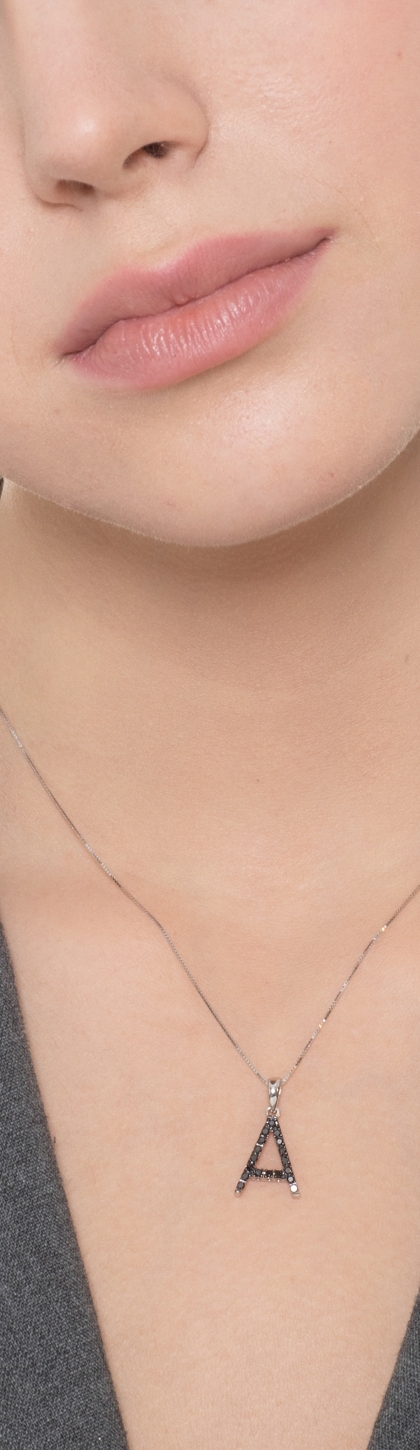 Collana lettera A in oro bianco 18k con diamanti neri