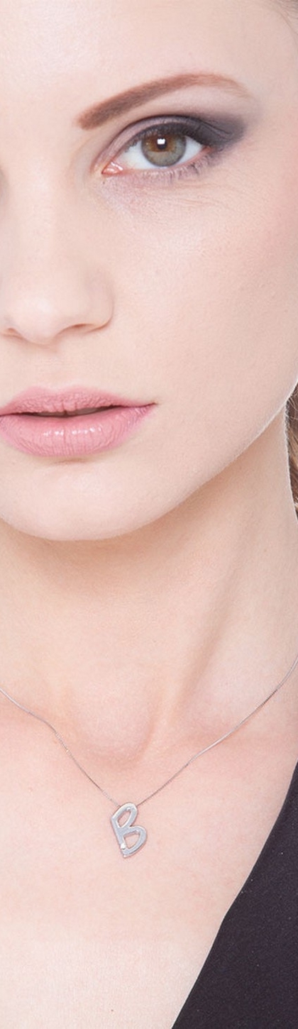 Collana lettera B in oro bianco 18k con diamante
