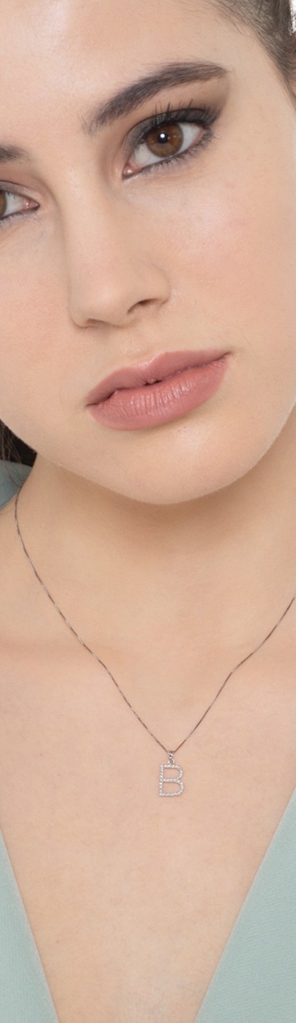 Collana lettera B in oro bianco 18k con diamanti taglio brillante