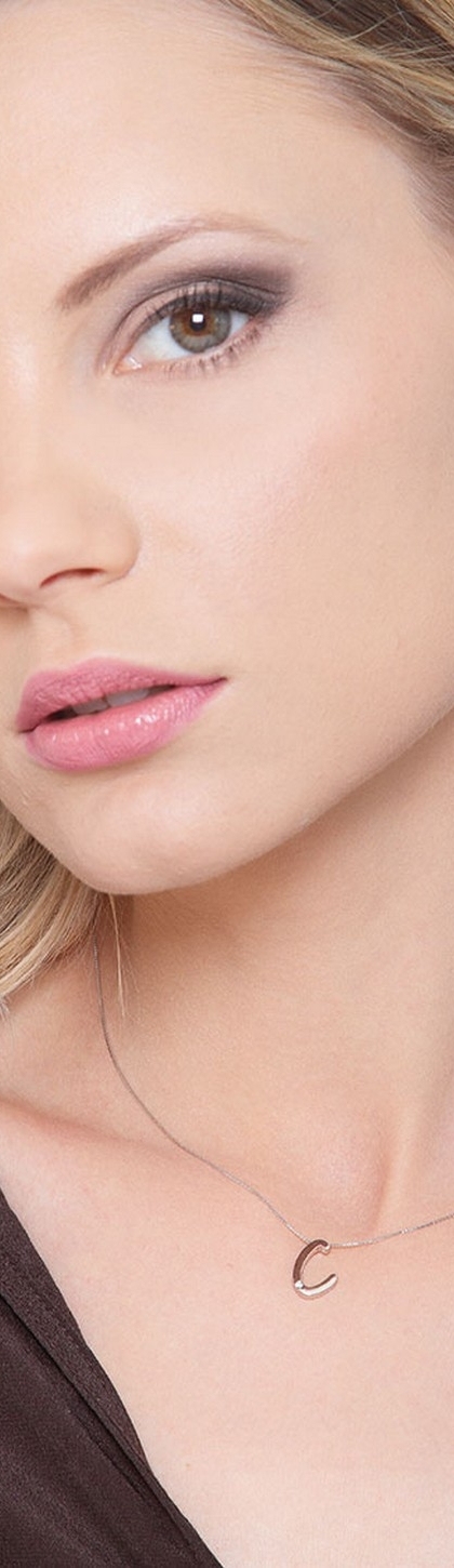 Collana lettera C in oro bianco 18k con diamante