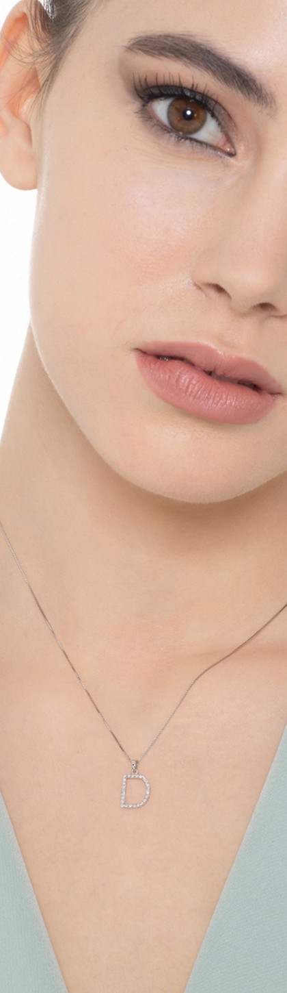 Collana lettera D in oro bianco 18k con diamanti, 1 cm