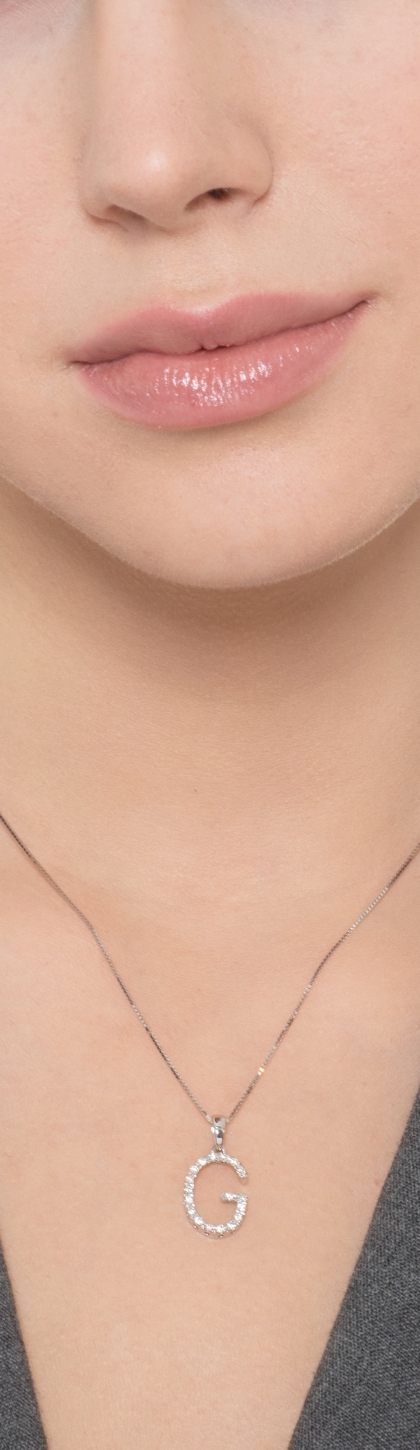 Collana lettera G in oro bianco 18k con diamanti