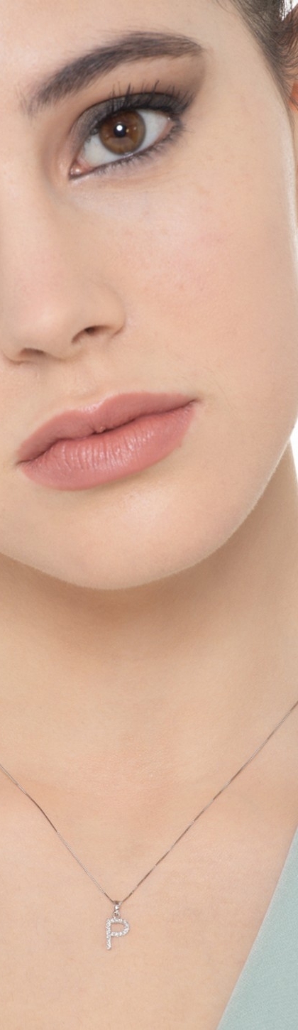 Collana lettera P in oro bianco 18k con diamanti, 0,80 cm
