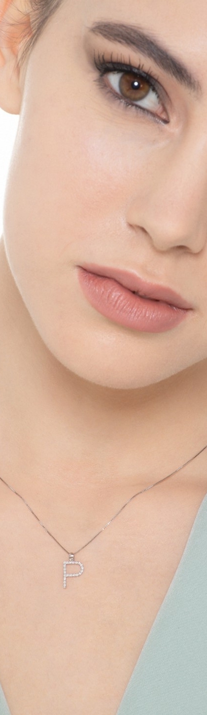 Collana lettera P in oro bianco 18k con diamanti, 1 cm