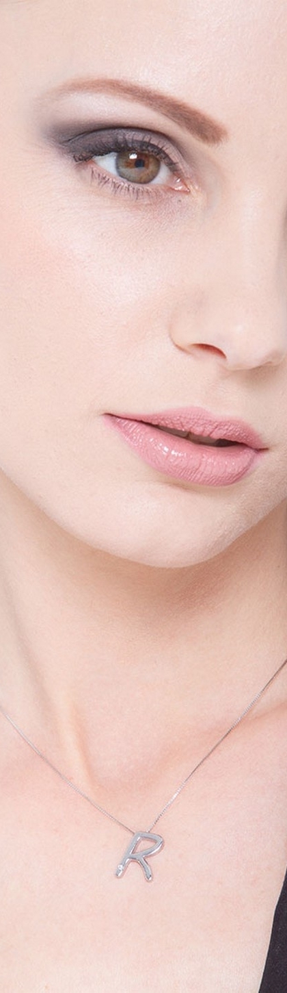 Collana lettera R in oro bianco 18k con diamante